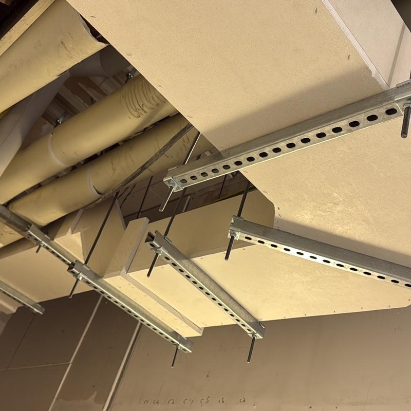 Ob in Fluren, Technikräumen oder Industriehallen, unsere Brandschutzdecken bieten Schutz, wo er gebraucht wird, und erfüllen sämtliche Anforderungen an den Feuerwiderstand. Für mehr Sicherheit über jedem Raum.